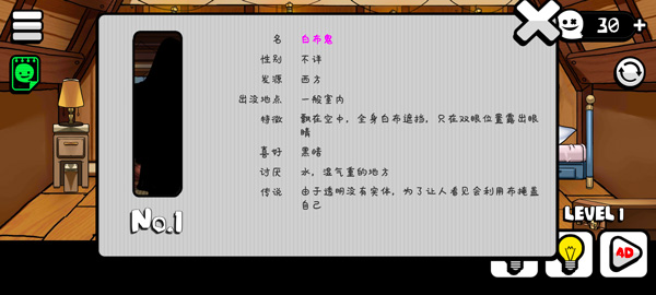 5、成功找到鬼怪,过关了,你可以游玩别的关卡来发现新的鬼怪