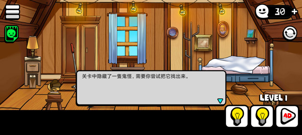 1、关卡中隐藏着一些鬼怪,你需要尝试把他们找出来