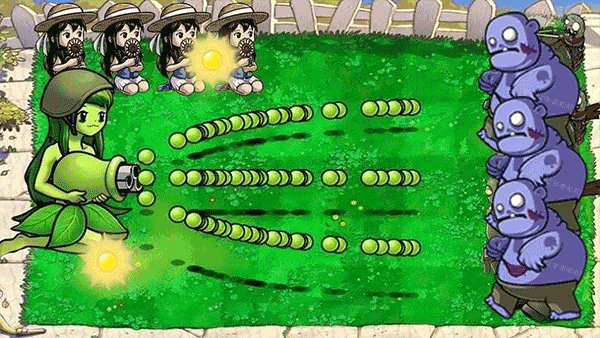 2、接着,在游戏中点击左边的具体植物,便可以对右边的僵尸进行攻击了;