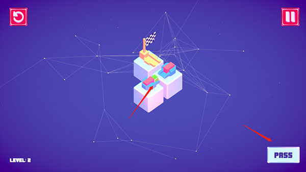 3、点击方块可以让它进行旋转,将方块对齐后点击pass即可成功通关。
