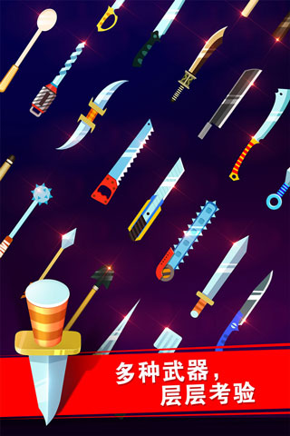 4、游戏的乐趣在于不断挑战,通过不同难度的最高关卡,并解锁所有的飞刀造型