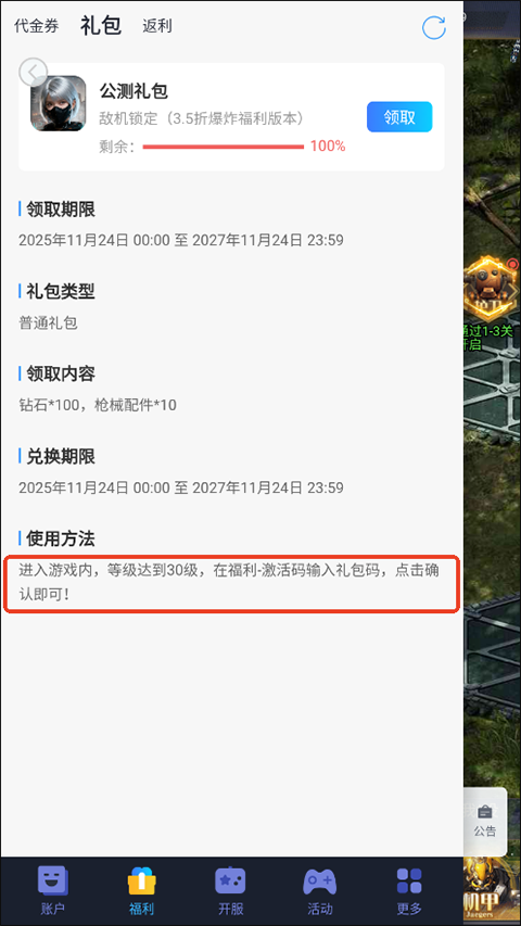 游戏福利