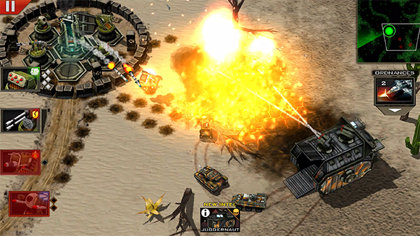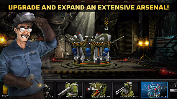 操作上非常简单,采用简单而灵活的触控方式,玩家只需要点击左下角的武器图标来选择武器,然后在地图中点击需要打击的敌人或者轰炸的位置就可以了,当出现红色的光标锁定后,武器就会自动发出炮弹轰炸该地方。玩家运用起来非常的轻松,让游戏体验变得更精彩。