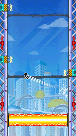 1、通过在两面墙壁之间穿梭躲避障碍物;