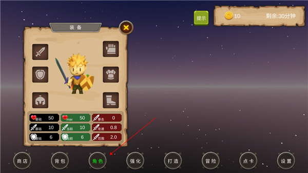 1、下载好地下城与商人官方版后,点击进入,选择【角色】可以了解已有角色的各种属性装备。