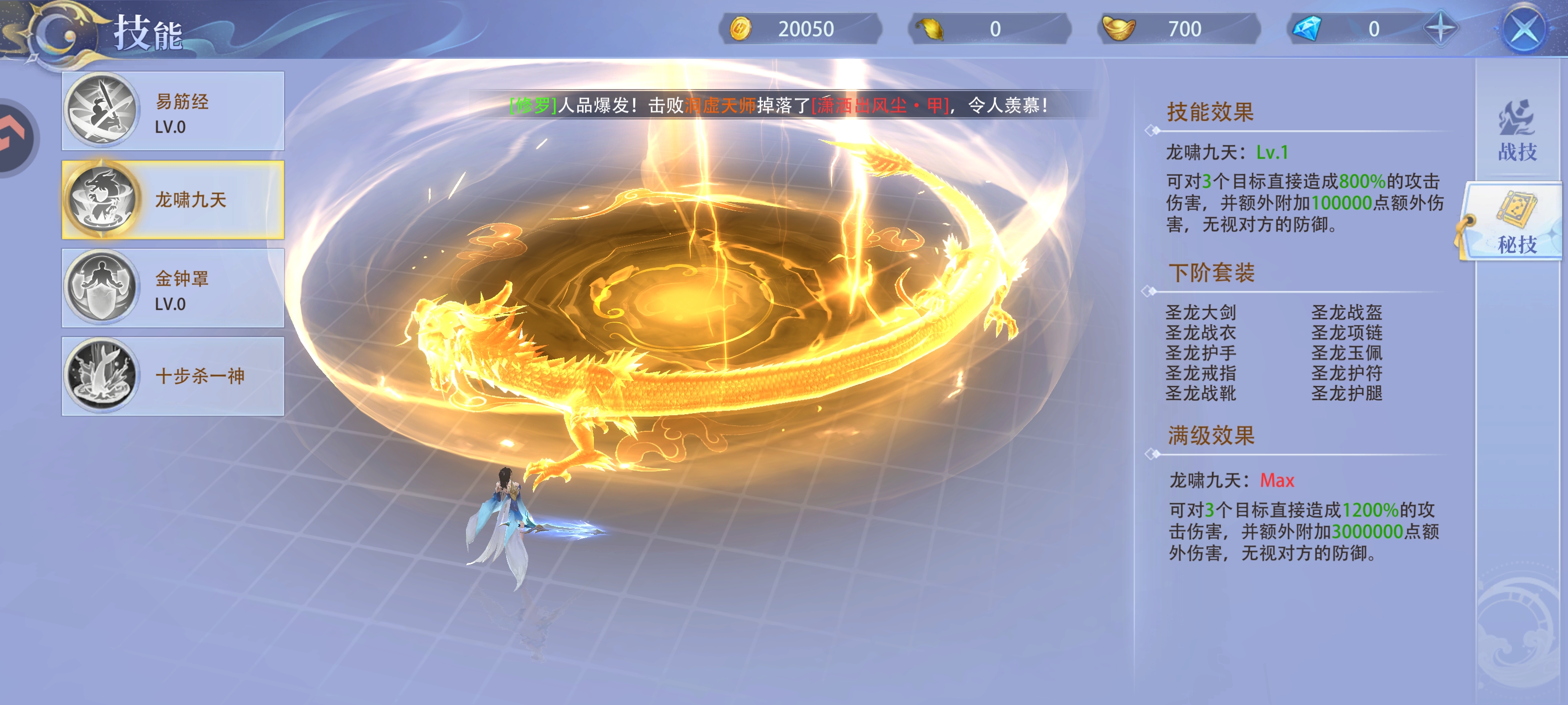 6、除了普通技能,还有秘技,每一个都是可以全屏范围伤害的大招,可以打出高额伤害。