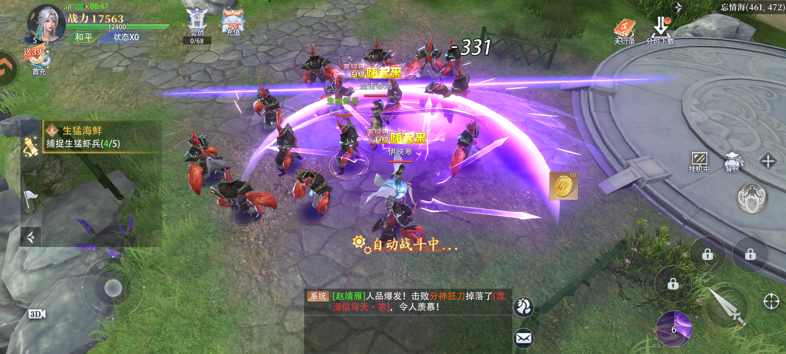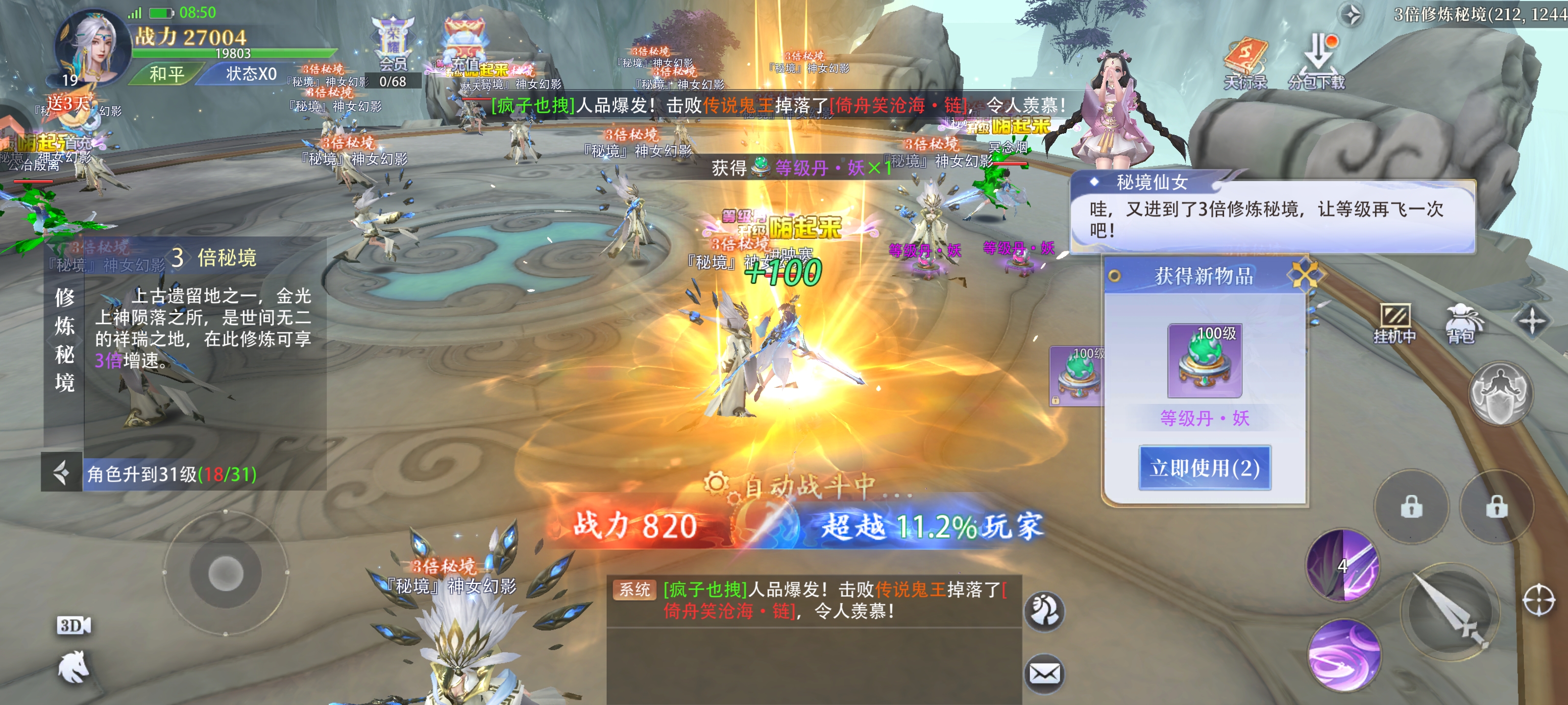 7、玩家还可以在三倍秘境通过打怪掉落的经验丹迅速升级,可以实现一丹一级的效果。