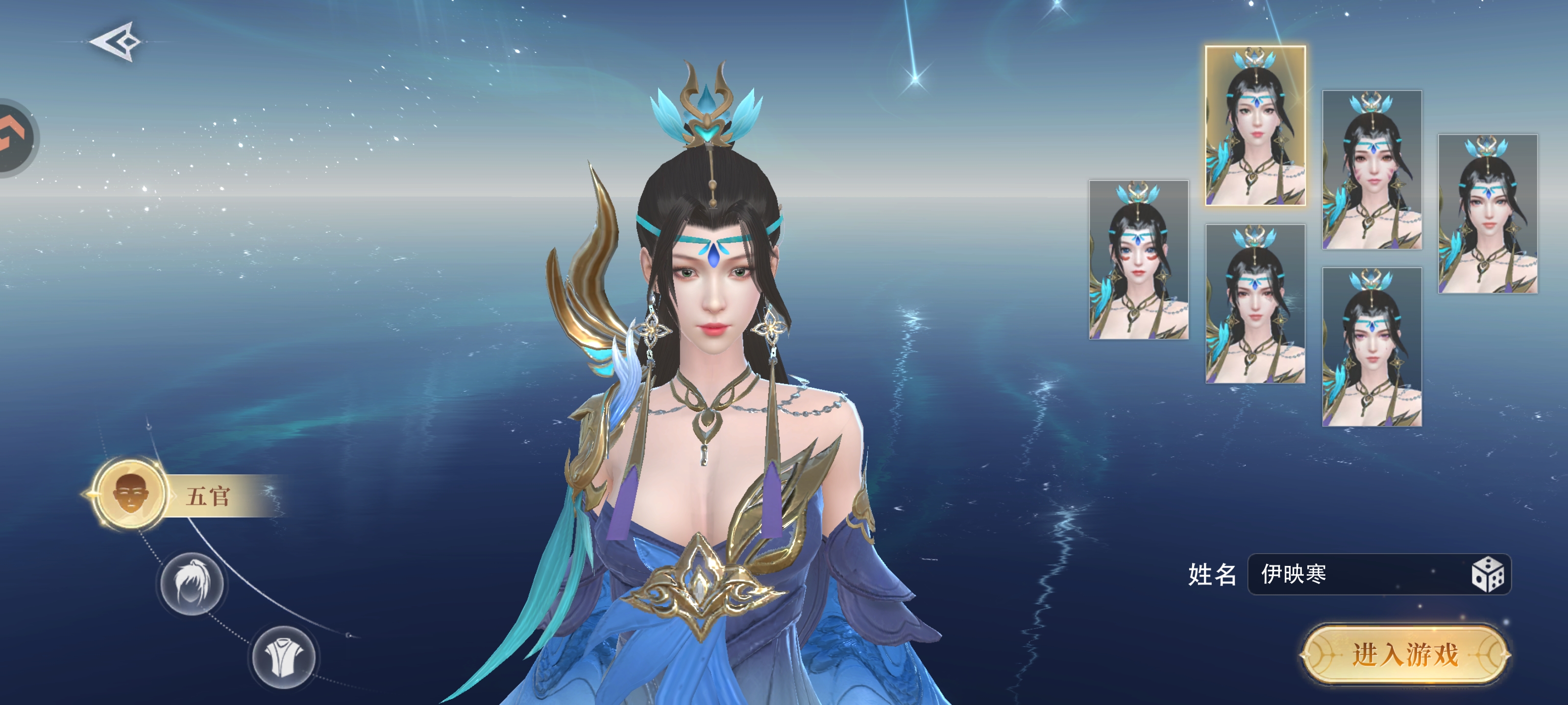 2、随后玩家可以选择角色的外观,如五官,发型,服饰等等,再输入角色昵称,进入游戏。