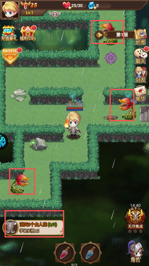3、在屏幕的左下角可以看见相关任务,击杀三个食人花。