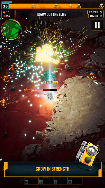 5、游戏为自动射击模式,通过击败虫群获取经验升级,每次升级都能从多项强化中任选其一。