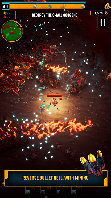 消灭虫族,升级装备,深入霍克斯星球危机四伏的洞穴。收集并组装各种威力强大的枪支,在快节奏的战斗中,用它们消灭一波又一波的外星怪物,并挖掘隧道,从洞穴深处收集珍贵的宝藏。自动射击模式让你无需瞄准和射击——只需奔跑和挖掘,即可在自动射击的同时保住性命。