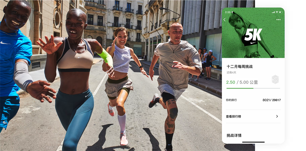 加入 Nike 跑步者全球社区,参与每周和每月距离挑战,也可以自行创建挑战,然后邀请朋友一同参与。完成目标,赢取成绩单,自由畅跑。