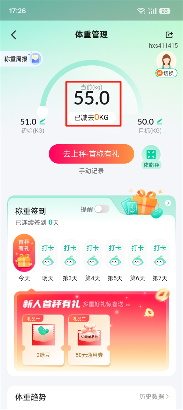 3、【当前体重】是根据体重秤数据而来,无法修改