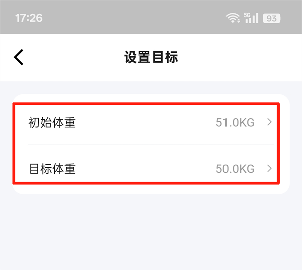 2、然后点击要修改的体重,包括初始体重和目标体重