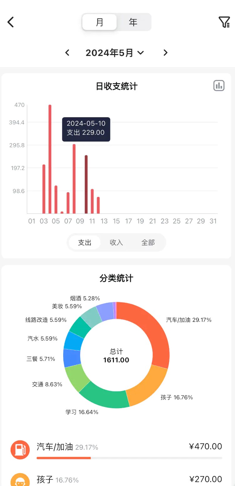 导入的账单会和在钱迹记录的账单一样,在列表中都会展示出来,也支持修改,删除,查询,统计