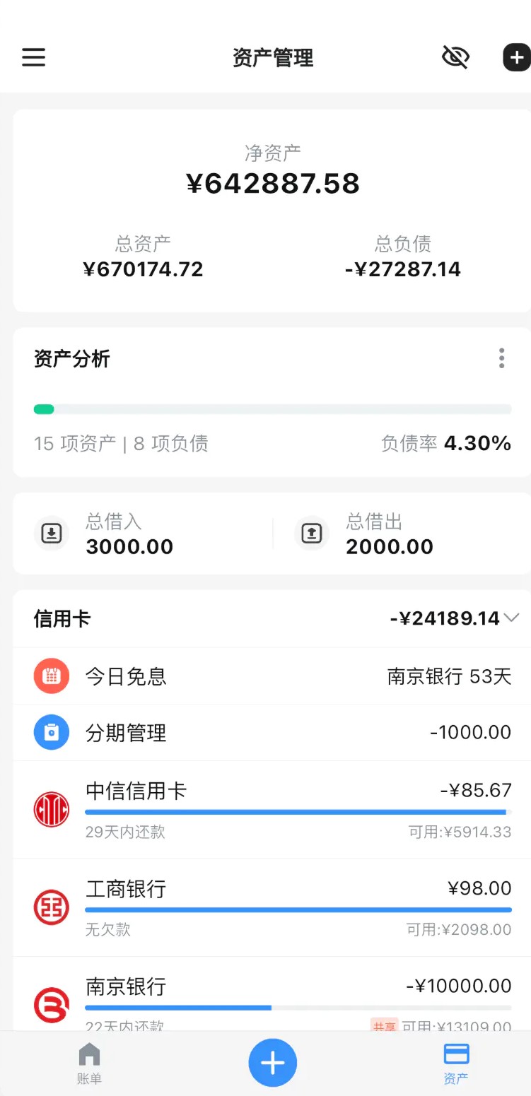 完善的资产管理功能,方便统一管理所有资产,记账后同步更新