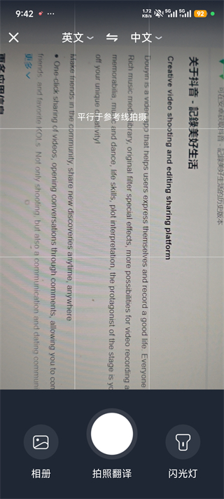 1、拍照翻译:通过拍摄照片或识别屏幕上的文字进行翻译,适用于阅读外文资料、路标、菜单等场景。