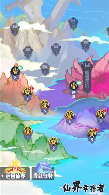 仙界幸存者是一款仙侠题材的Roguelike生存闯关游戏,游戏以穿越剧为蓝本,玩家意外穿越到仙界幻境,成为仙魔大战后的唯一幸存者,在剑神的助力下找回前世记忆,寻觅遗失的神兵法宝击败血魔老祖。在游戏中玩家选择自己喜欢的游戏角色进行培养升级,后期对抗更强大的对手,同时玩家也可以解锁其他角色,或者购买物品装扮自己的角色。全新的场景,最惊险曲折的游戏故事,一场精彩的游戏冒险围绕故事慢慢展开。穿越在仙界的世界中,你可以探索更多的地图,可以选择自己的职业进行战斗,轻松征服神兽成为你的坐骑,和众多仙友们进行PK,轻松享受修仙的乱斗生涯。