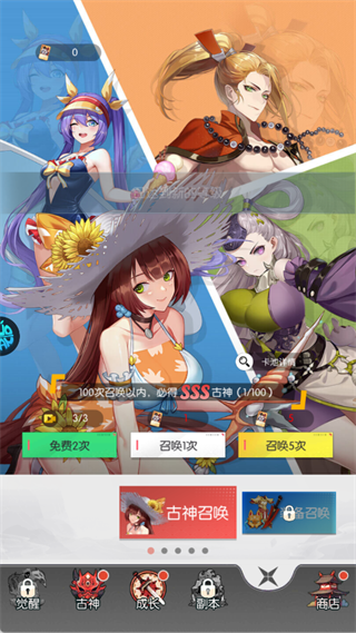 游戏设有100次召唤必出SSS古神的保底机制,建议先用免费次数,后续再搭配福利代金券抽卡,更加划算。