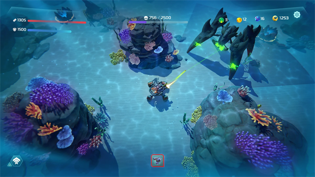 用双手玩游戏,用手指在屏幕上滑动,让潜水员向任意方向移动,或者使用虚拟摇杆。找到一个矿井(一个深凹处亮着蓝色灯光),潜入其中开始挖掘,寻找资源。因为你没有背包,所以需要自己把资源拖到机械装置上。一旦听到攻击声或看到计时器计时结束,立即离开矿井。瞄准并发射子弹攻击外星人。收集各种资源来解锁强大的升级:改进你的武器、增加钻头的冲击力、提高喷气背包的最大速度,以及许多其他升级途径--每种途径都能让你和你的穹顶获得最大的生存机会!记住:成群的怪物不会给你留下任何机会。你将成为幸存者和英雄之一,还是在《海洋守护者》的狂野自然中死去?