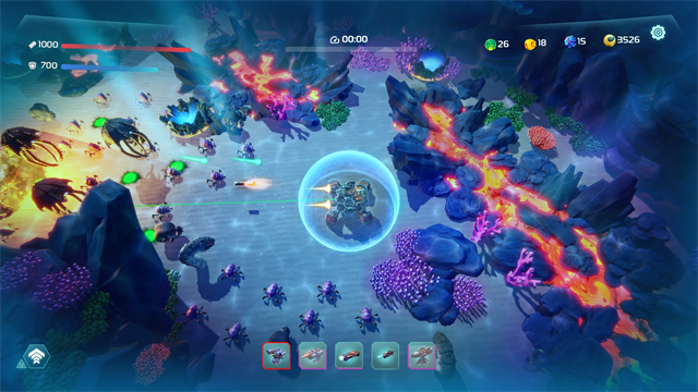 最近我在玩一款叫《海洋守护者穹顶生存》的手游,感觉挺有意思的。这款游戏是塔防采矿加Rougelike元素的结合体,玩法挺新颖的。玩家需要驾驶机甲在水下寻找资源和神器,同时躲避或攻击那些入侵的怪物。每次进入洞穴都是随机生成的,所以每次探索都像是全新的冒险。