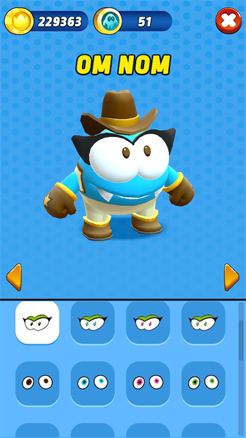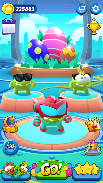 4、引入来自《Cut the Rope》宇宙的新角色:0mNom和0m Nelle是本游戏的头号巨星没错,不过还有更多酷炫角色和帅气服装等你来解锁;