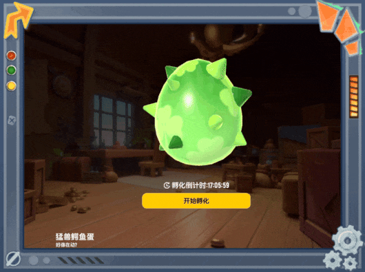 当肠肠将【宠物室】升级至LV2后,即可在【孵化台】投入【猛兽鳄鱼蛋】开始孵化