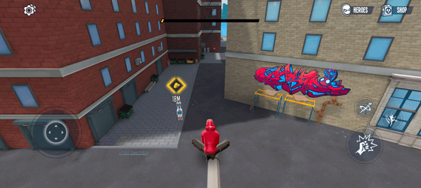 1、在城市当中畅游,荡漾,穿梭,各个不同的地方巡视,有危险的地方就会有蜘蛛侠的存在,保护这座城市人类的安全。