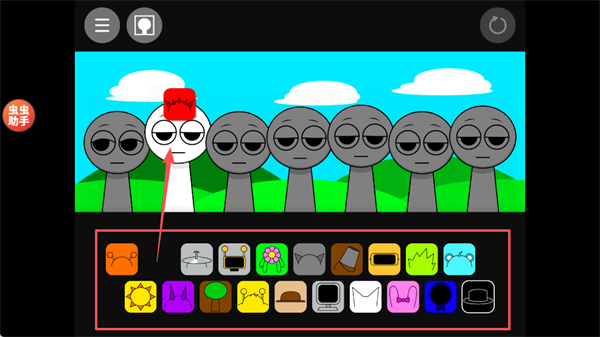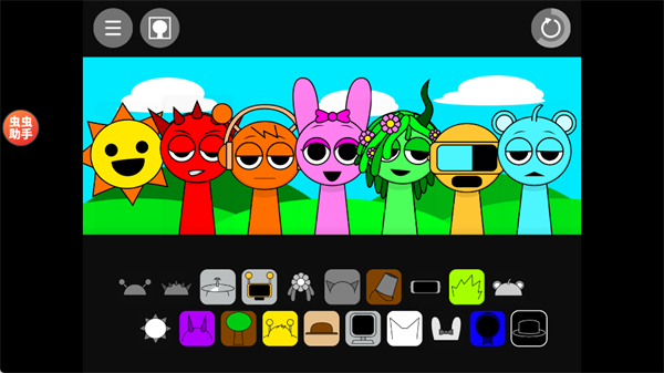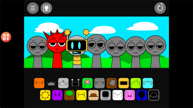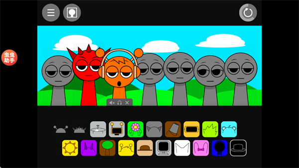 玩起来很简单,打开游戏后可以在屏幕下方选择各种装饰道具拖拽到角色头顶搭配,不同角色搭配不同装饰会触发独特的音效组合,创造出风格各异的节奏旋律。你可以根据喜好尝试多种音乐风格,如果觉得不满意还能一键清空重新开始。拖动右下角的帽子还可以切换另一种模式。