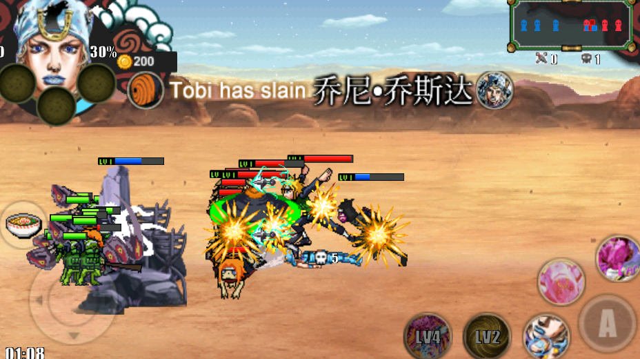 《JOJO战记》是一款根据经典动漫改编的横版格斗手游,游戏的画面风格非常符合二次元审美,角色设计和技能都高度还原了原作。操作简单易上手,左边控制移动,右边释放技能,玩起来特别流畅,还能打出酷炫的连招和特效。游戏里有多种玩法模式,最让我惊喜的是可以和其他火影角色联动,自由组合阵容,打造自己的战斗风格,感觉策略性很强。