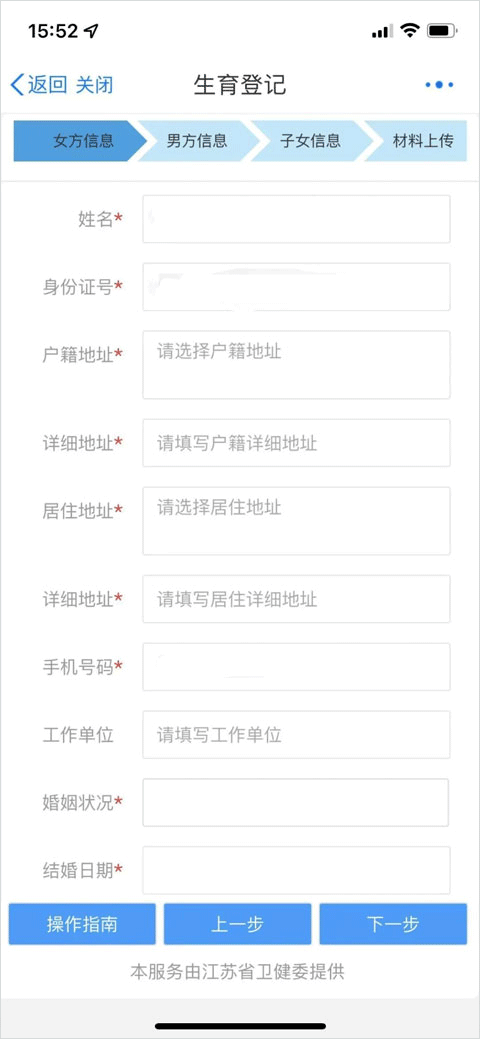 7、完成信息输入后进入材料上传页面,上传户口簿照片及其他相关证件,点击下一步;