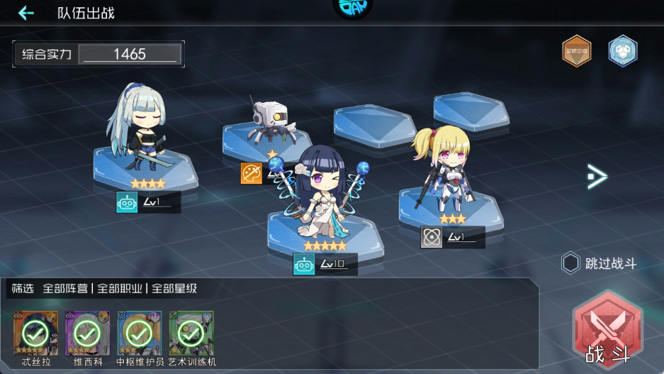 6、在右上角可使用加速或跳过功能,快速推进战斗进程;