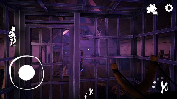 6、然后控制轮盘移动走出铁笼,并通过寻找线索来逃离这个恐怖的房间吧!