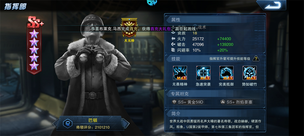 战地荣耀(0.1折坦克大战)指挥官介绍