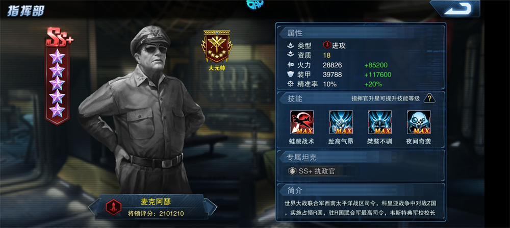 游戏里还有好多指挥官角色,比如麦克阿瑟、巴顿这些历史上的大人物,每个都有不同的类型,像进攻、治疗、战术什么的,设计得很用心。跨服军团战听起来也很刺激,能和其他玩家一起合作,装甲协同出击,感觉会很有团队感。