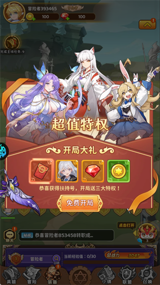 点击【免费开局】领取扶持号+三大特权(角色、钻石、金币),直接解锁0.05折低门槛福利。