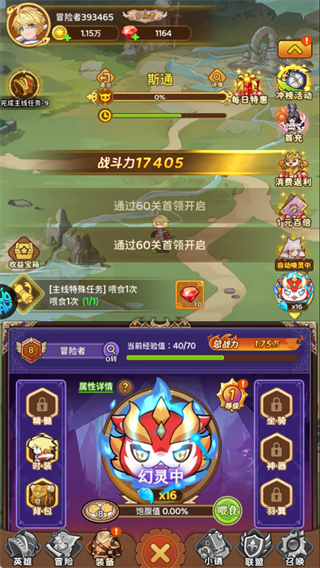 通过喂食功能培养幻灵,提升其等级与属性,可获得大量物质。