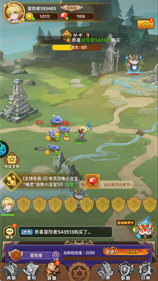 开启自动挑战关卡,完成主线任务获取钻石、资源,提升总战力。