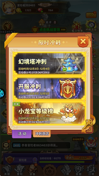 参与幻境塔、开服冲刺等活动,完成目标可获得稀有道具,快速拉开战力差距。