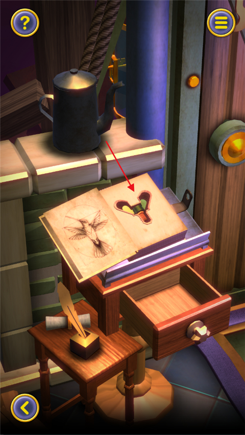 7、回头查看机关旁的书籍,点击翻阅其中的页面,会发现一个可拾取的零件道具。
