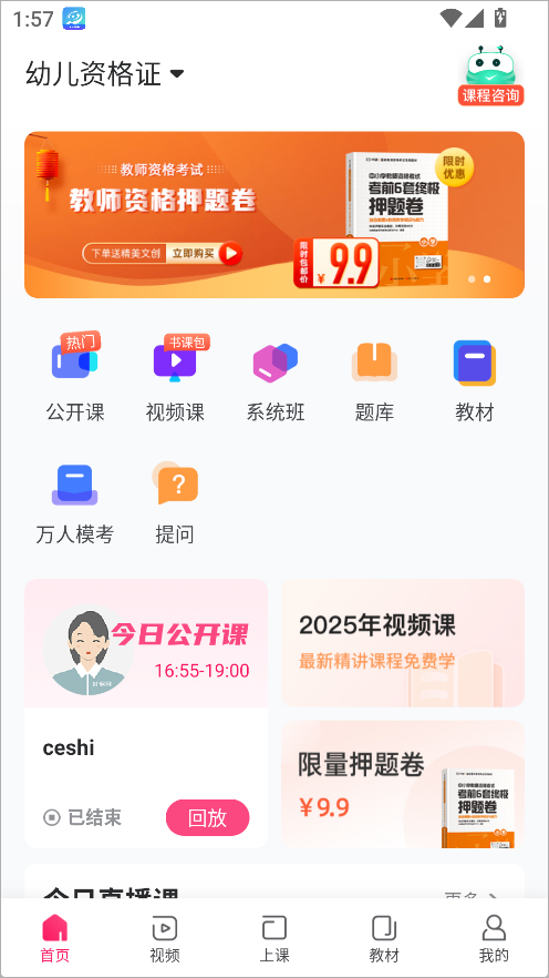 功能方面,首页提供最新考试资讯和热门课程推荐,方便考生及时了解动态;视频模块汇聚名师讲解和历年真题解析,支持倍速播放和离线缓存;上课模块可进入直播课堂或观看回放,实时互动答疑让学习更高效;“我的”模块则帮助用户追踪学习进度、错题收藏等。此外,App还提供官方教材电子版购买服务。