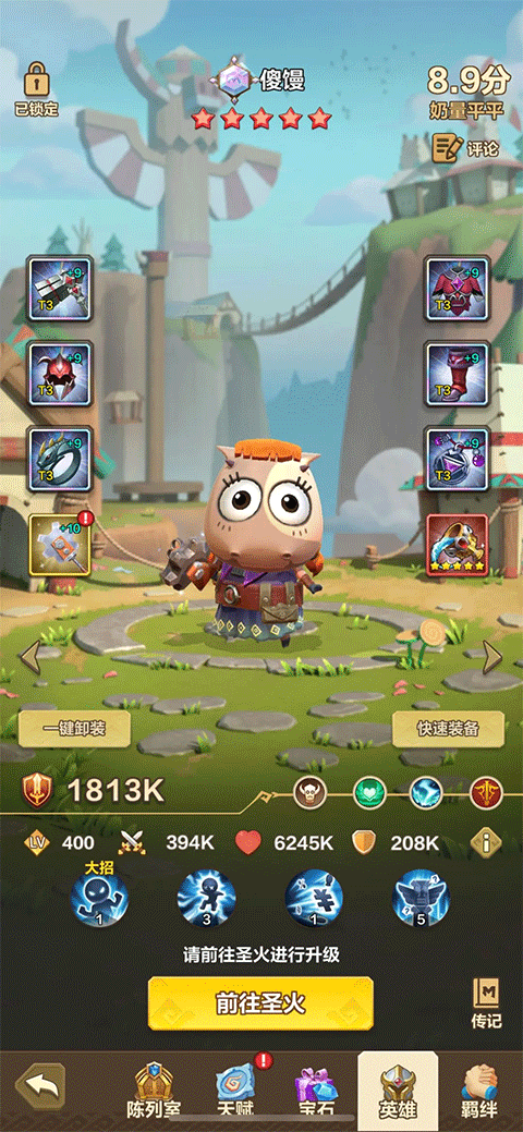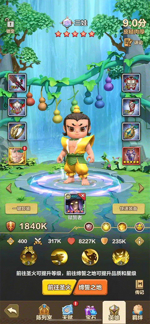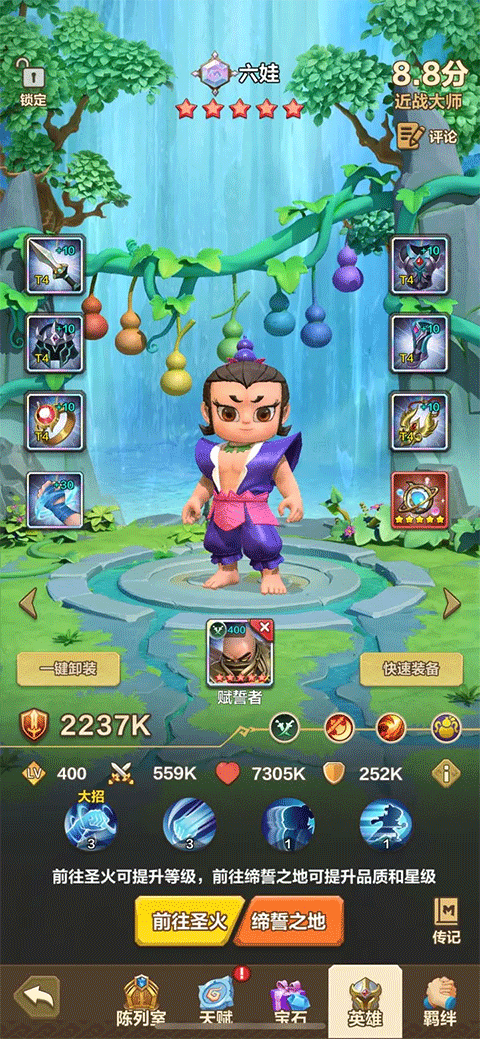 1、玩家可以通过游戏中的神庙来提升英雄的星级,带来属性上的增益。当英雄达到五星之后就可以解锁天赋了,可以自选攻击或者防御词条来进行强化,达到最终阶段后技能机制也会进一步优化;