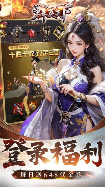 游戏还推出了超多福利活动,比如0.05折首充、登录送神将和代金券等等,简直不要太划算!如果你喜欢三国题材的卡牌手游,《群英天下》绝对值得一试,既能体验策略战斗的乐趣,又能享受丰富的奖励,简直太香了!