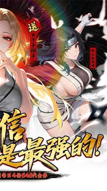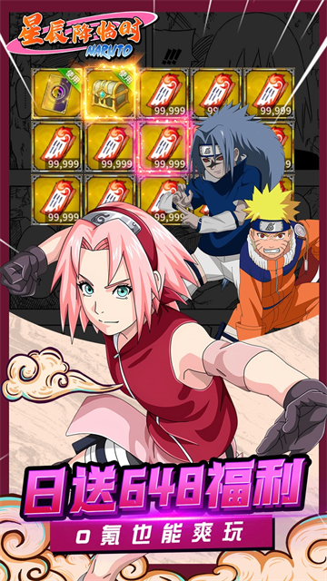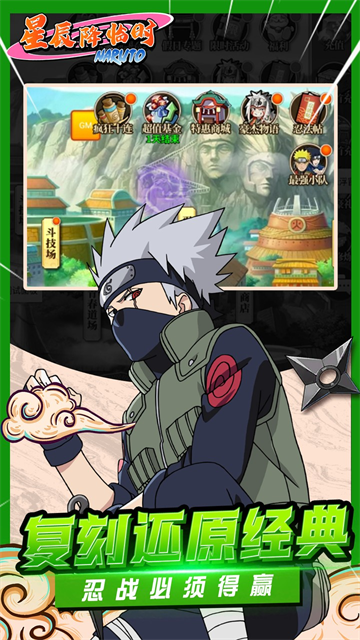 星辰降临时(0.1折火影送双倍代金)是一款火影题材的卡牌手游,游戏讲述玩家从一名默默无名的忍者,一路收集自己的忍者团队,征战忍界的故事。游戏内有众多便捷按钮,可以点击自动闯关和一键跳过战斗,将减负降到极致;游戏内玩法丰富,忍者学院、终末之谷、异空间战、火影之路、忍宗试炼等趣味战斗体验。游戏内福利满满,不肝不氪,快来一起加入战斗吧!