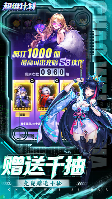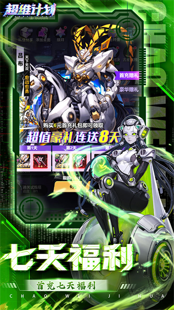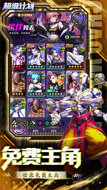 超维计划(3.5折超神英雄送千抽)是一款全新赛博朋克风格放置卡牌手游,游戏背景设定在200年后的未来世界,这里的科技高度发达,智能机器人、义体改造已经充斥在城市的各个角落,但是文明和科技的冲突却越来越严峻!你将扮演主角,亲历赛博朋克世界,招募伙伴,抗击邪恶势力,守卫街区的和平。游戏不在受限于传统卡牌的束缚,主角团可以自由选择,伙伴可以转职,超多的策略搭配,让你体验不一样的放置卡牌手游!