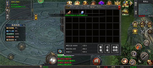 2、五分钟即可到达二大陆,刷怪过程中难免会暴富,小主记得点开背包找到装备回中开启自动回收避免爆仓哦