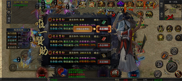 2、开启赞助礼包,获取额外成长资源,助你快速提升战力。