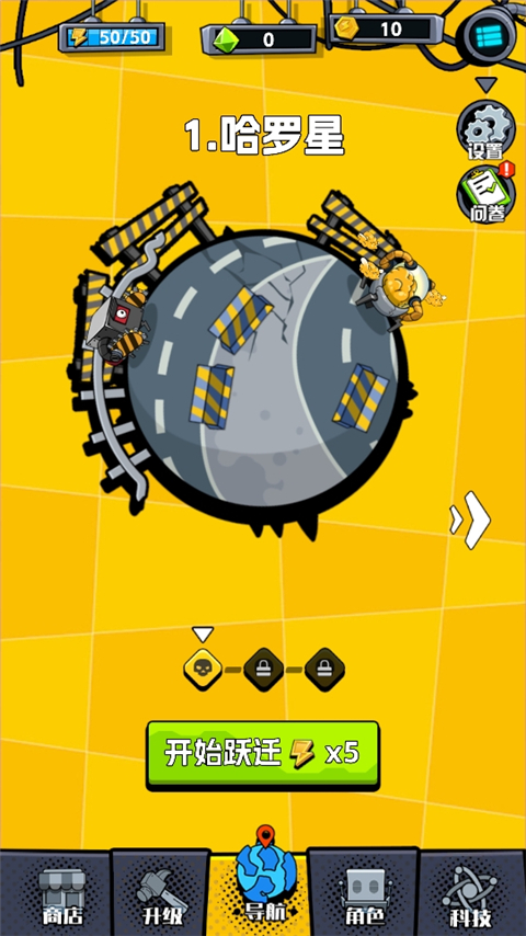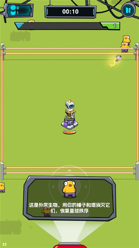 4、黄色角色是外来生物,玩家可以用你的锤子和塔消灭它们,恢复星球秩序;