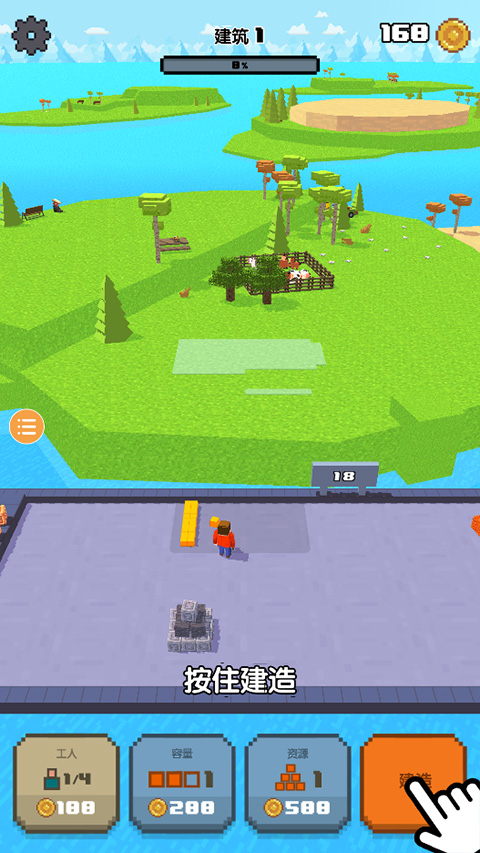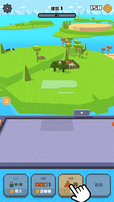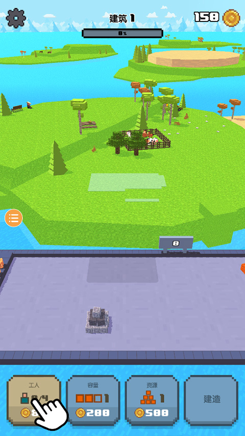 资源获取后就点击工人,来招募工人来使用资源开发小岛