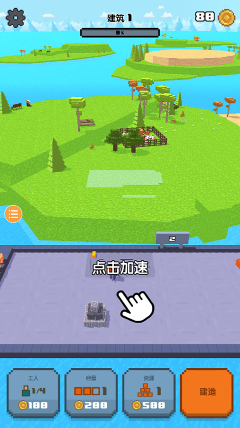 可以不断点击工人招募更多的工人来加速浮岛开发